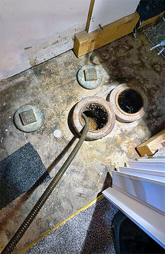 Professional clearing of main sewer line blockages causing multiple fixture backups or sewage overflow issues.
